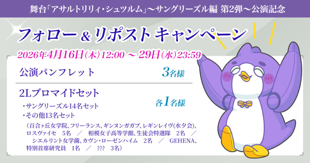 舞台「アサルトリリィ・シュツルム」~サングリーズル編 第2弾~【X】フォロー&リポストキャンペーン